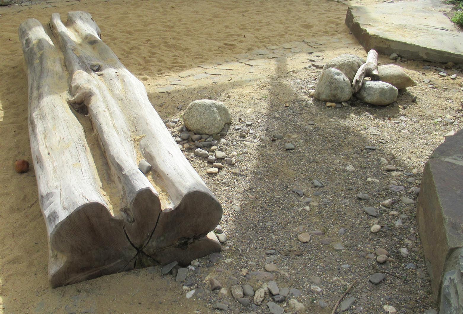 Die Kinder können hier durch selbstgesteuerte Bewegungserfahrungen Handlungskompetenzen und ein positives Selbstbild entwickeln. Dafür stehen ihnen vielfältige Möglichkeiten zur Verfügung: sie können Stufen rauf- und runtersteigen, sich an Stämmen hochziehen und entlanghangeln, steile und flache Hänge bewältigen.