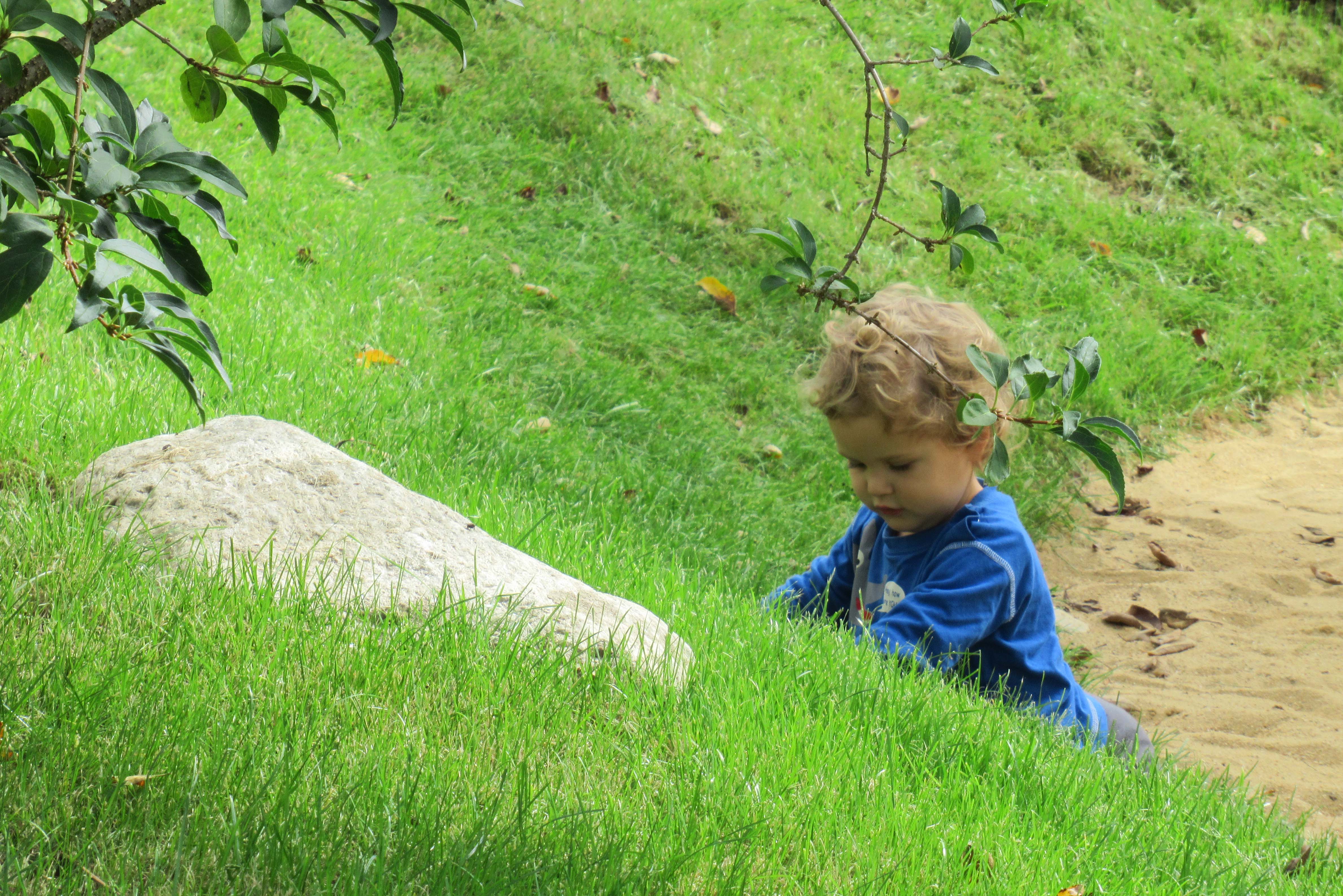 Für die Entwicklung ihrer sensomotorischen Fähigkeiten brauchen die Kinder die Erfahrung von Matsch, Sand, Blättern, Stöcken, Gebüsch, Felsen und Steinen. In der „Stöckchenschlucht” und dem „Hasengebüsch” lernen sie, spezifische Reize und Wahrnehmungen mit bestimmten Bewegungsreaktionen zu verbinden.