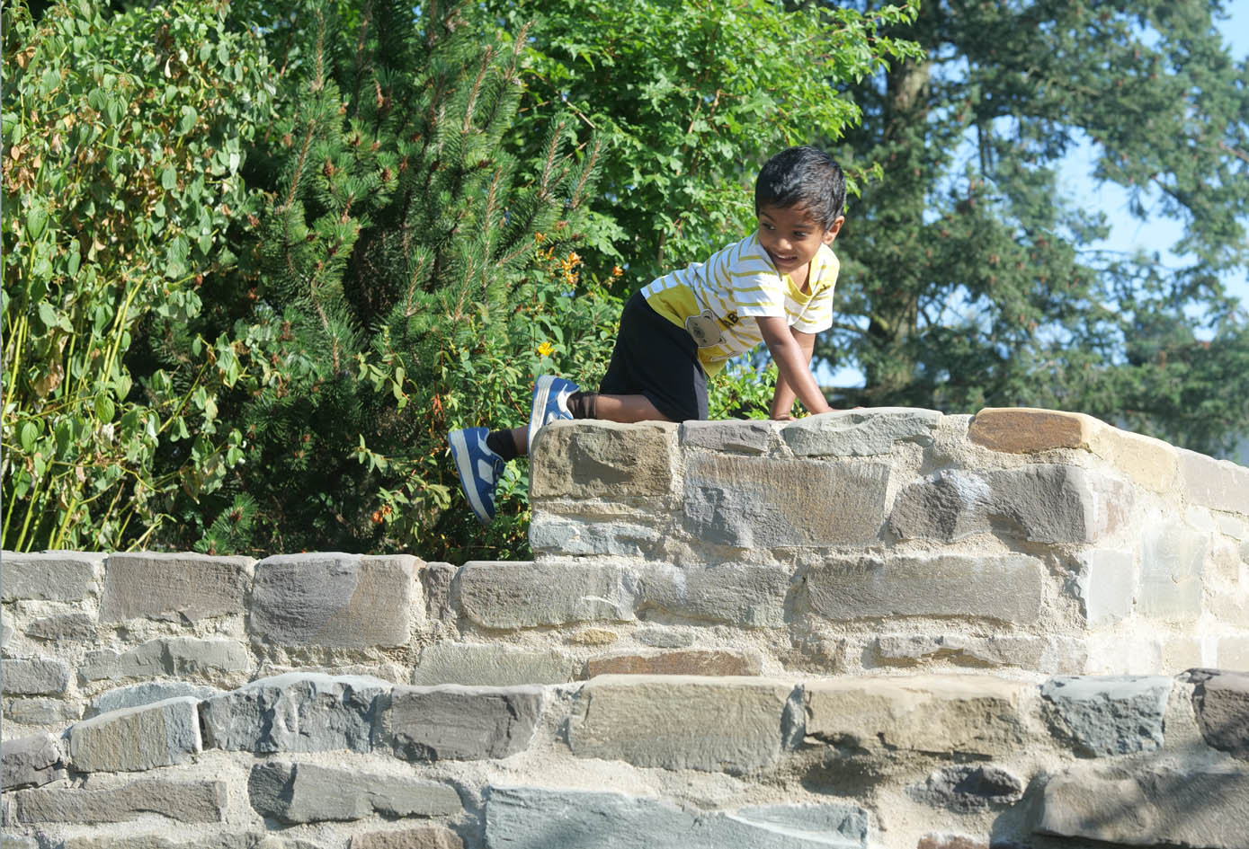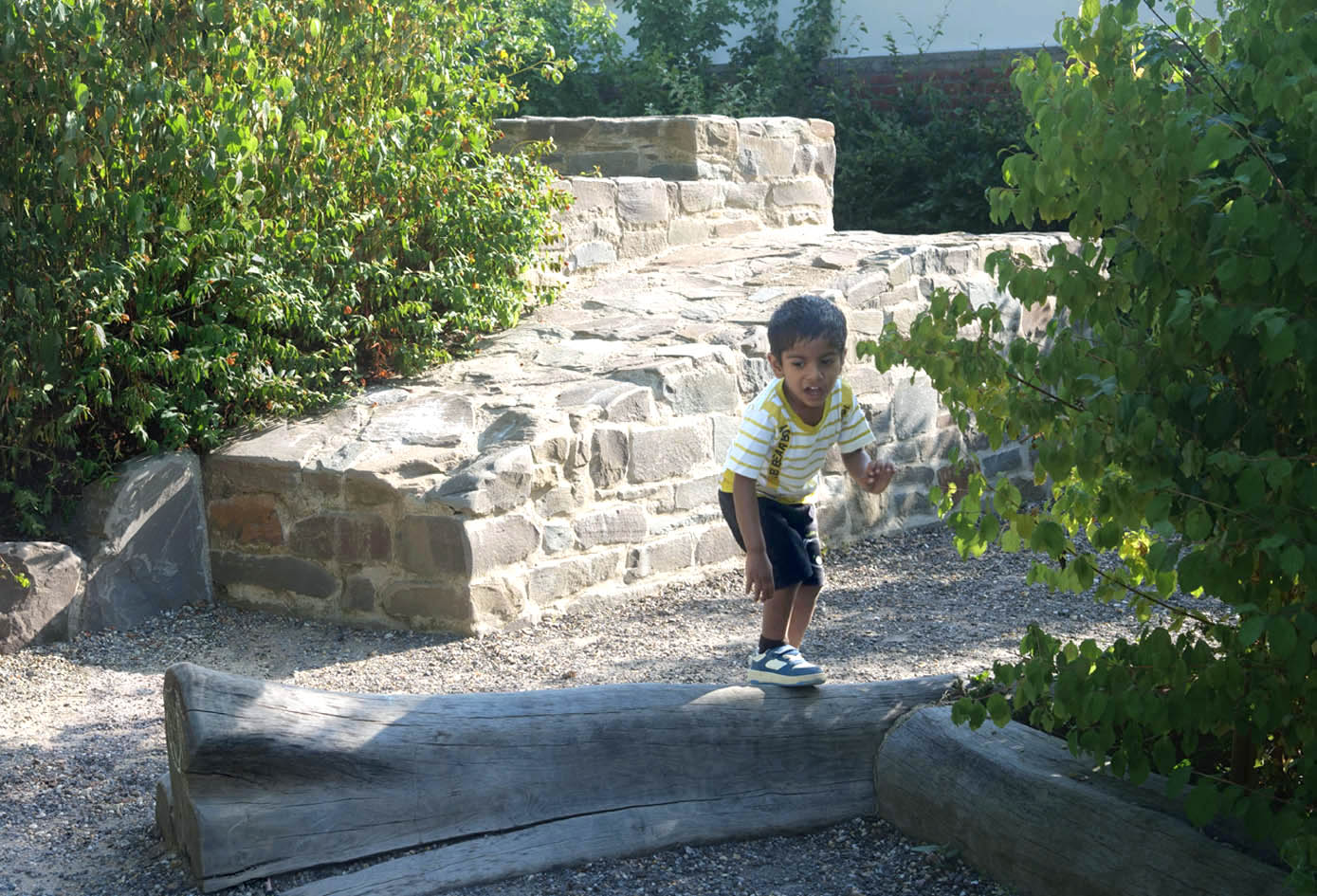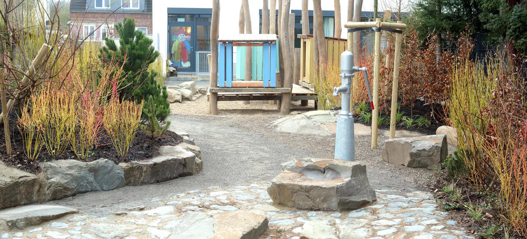 Trotz der beengten innerstädtischen Lage wurde den Kindern der Kita Veedels-Kids „eine Tür nach draußen“ geöffnet. Aus dem ehemaligen Parkplatz einer Druckerei wurde mit dem Konzept Erfahrungsgarten® ein landschaftlich gestalteter, naturnaher Garten für Kinder.