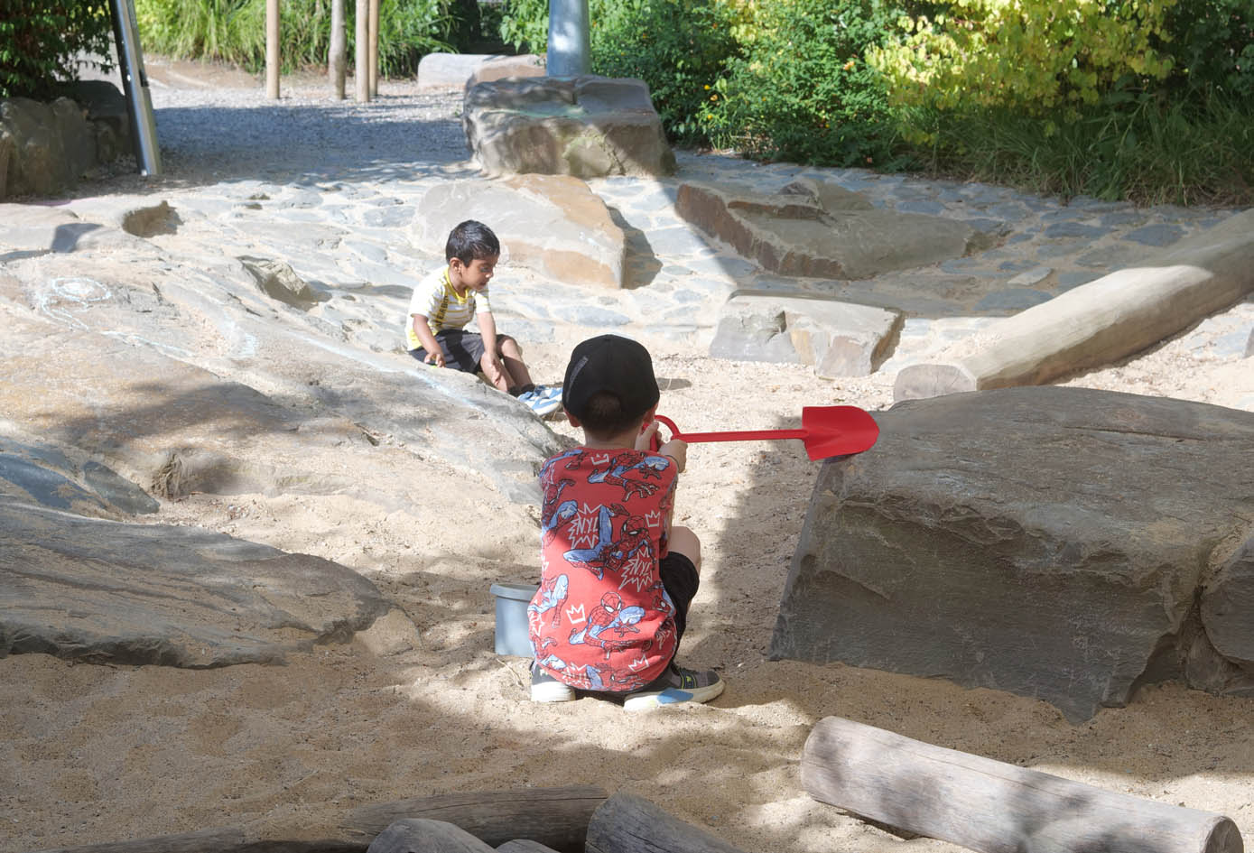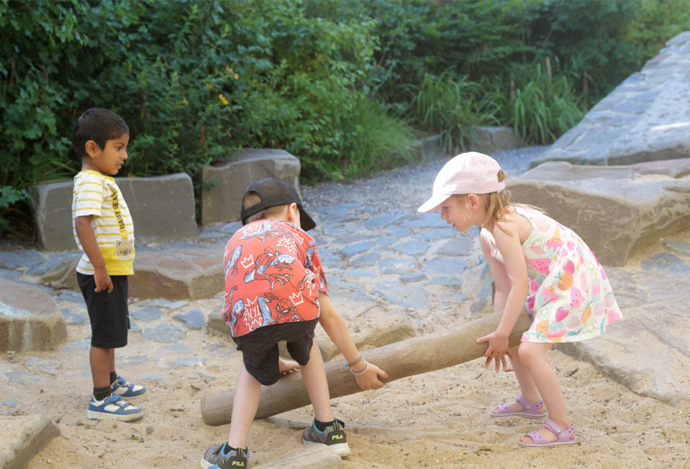 Der Erfahrungsgarten® der Kita Veedels Kids bietet den Kindern im Rahmen einer kleinen verdichteten Landschaft naturnahe Spielorte, die ihre Fantasie herausfordern und sie einladen, in gemeinsam geschaffene, eigene Spielwelten einzutauchen.